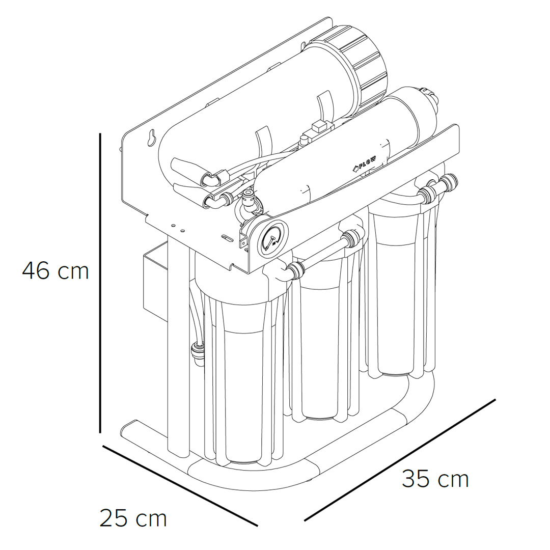 Pompalı Güçlü Altyapı: Yüksek GPD kapasitesini desteklemek üzere her model, kendi kapasitesine tam uyumlu güçlü bir pompa ve adaptör ile donatılmıştır. Şebeke basıncı düşük olsa bile tam performans çalışır.